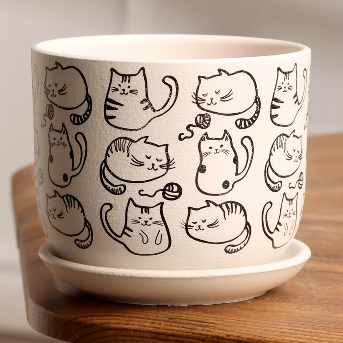Горшок цветочный Коты белый бук №1, 0,8 л, d - 12 см
