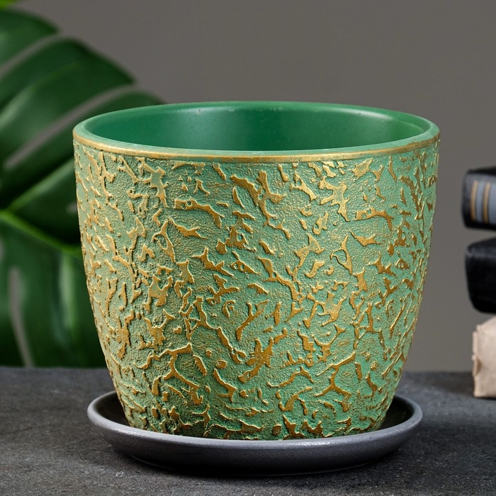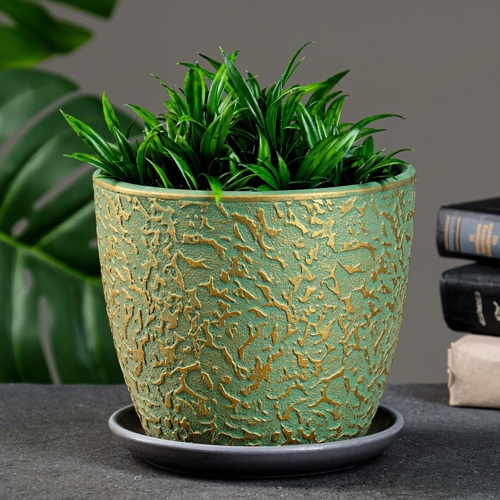 Горшок цветочный "Муар" зеленый бутон №3, 2,15л