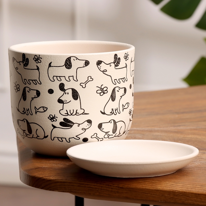 Горшок цветочный Собаки белый бук №1, 0,8 л, d - 12 см