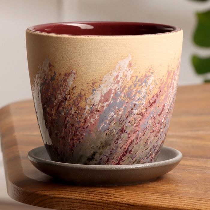 Горшок цветочный Живопись бежевый крокус №1, 0,7 л, d - 11,7 см