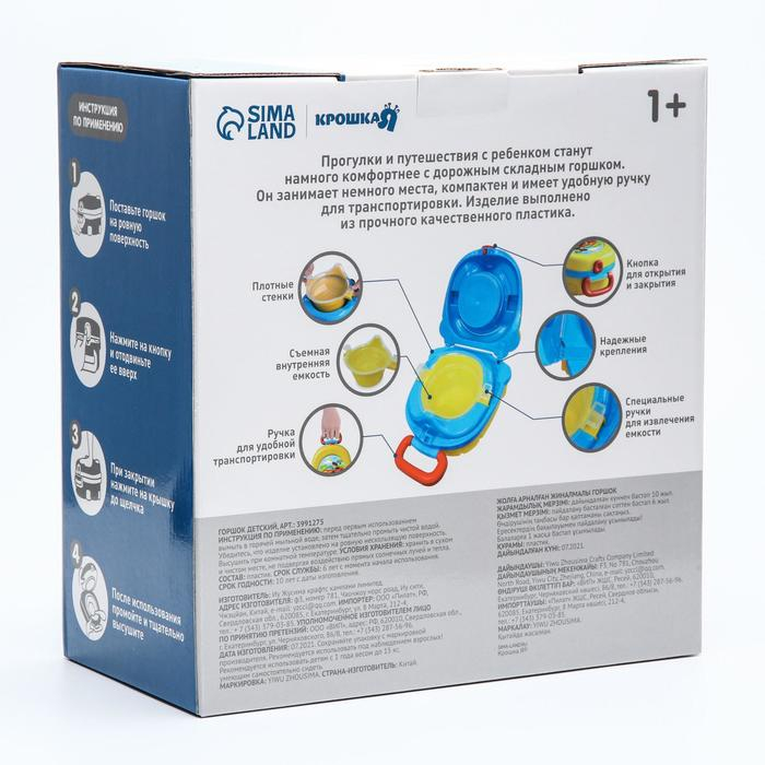 Горшок детский дорожный, складной, переносной, накладка на унитаз, цвет желт/синий, Крошка Я