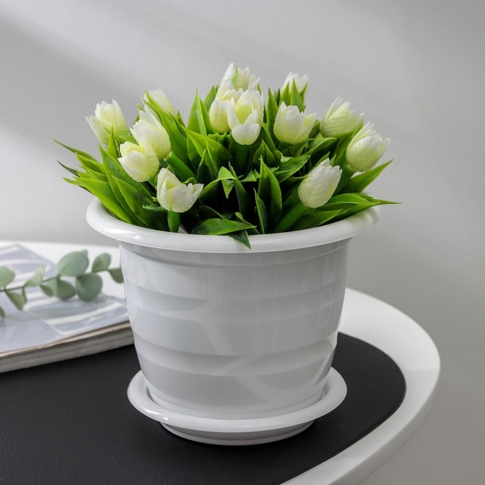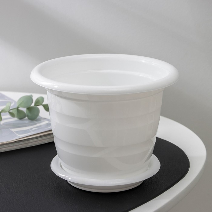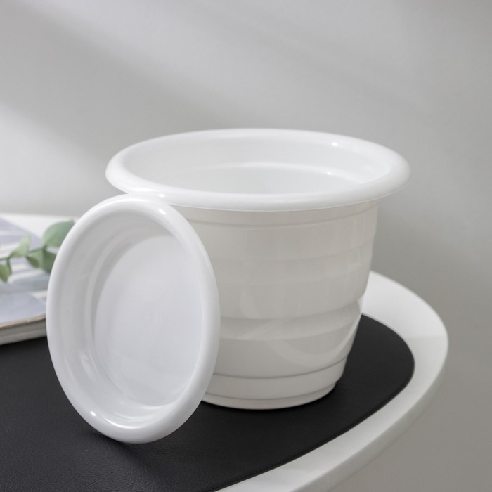 Горшок для цветов с поддоном «Виола», 1 л, пластиклвый, цвет белый