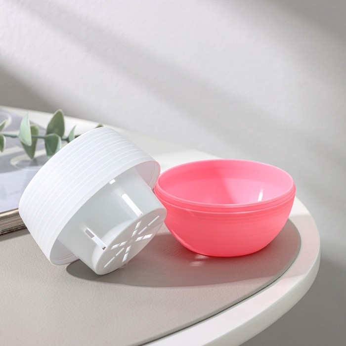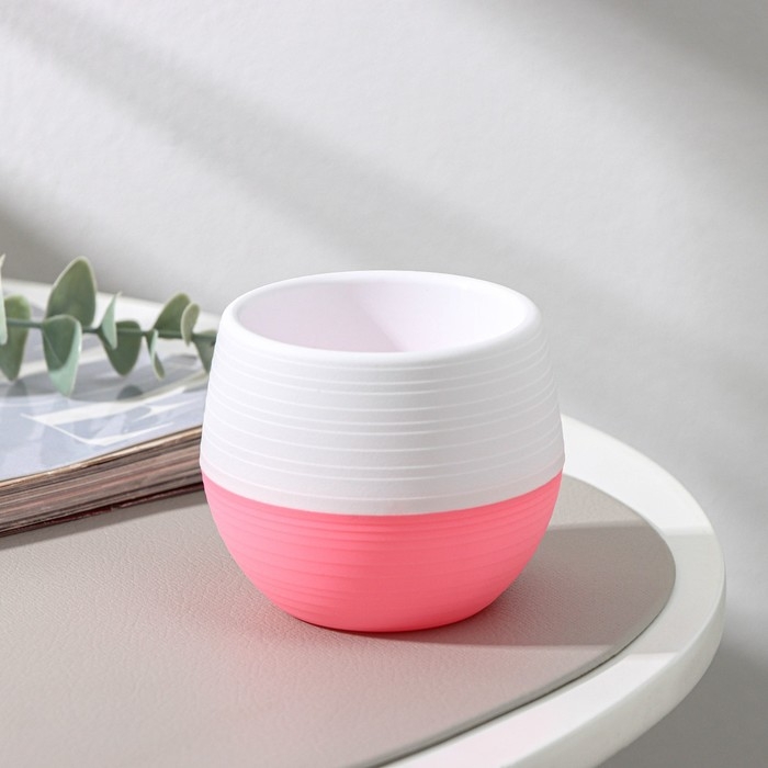 Горшок для цветов с поддоном «Япония», 125 мл, d=8 см, h=6,5 см, цвет белый-розовый