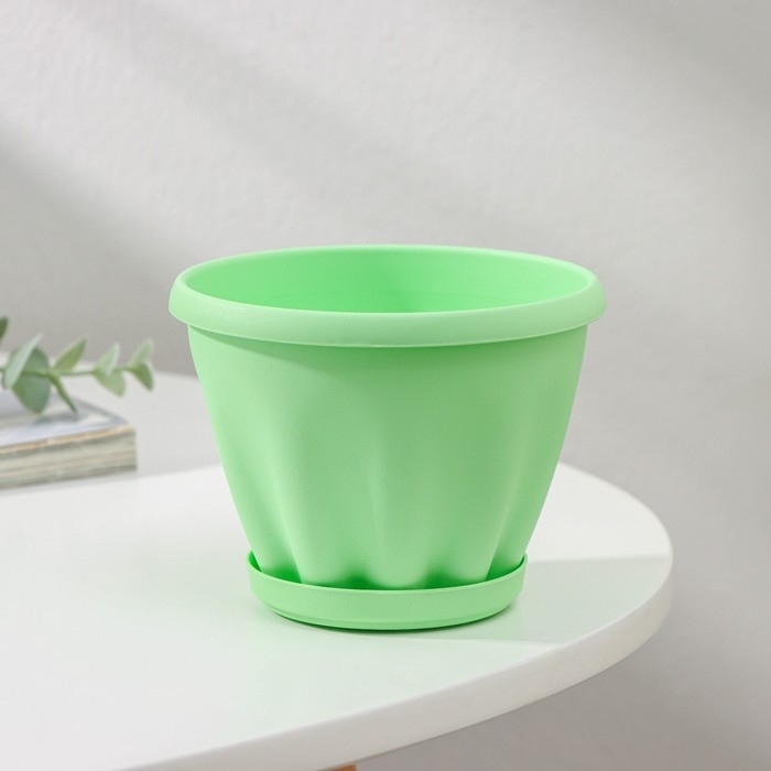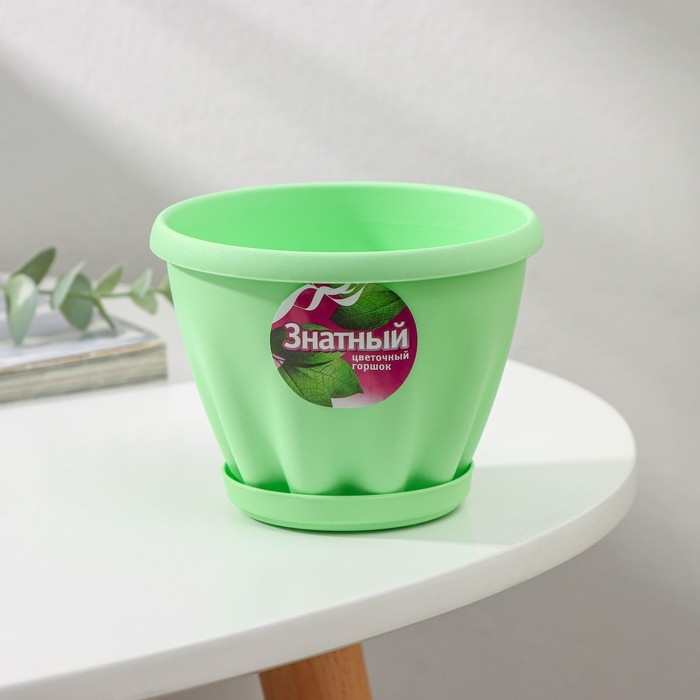 Горшок для цветов с поддоном «Знатный», 450 мл, d=11 см, цвет зелёный