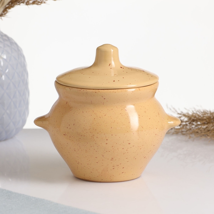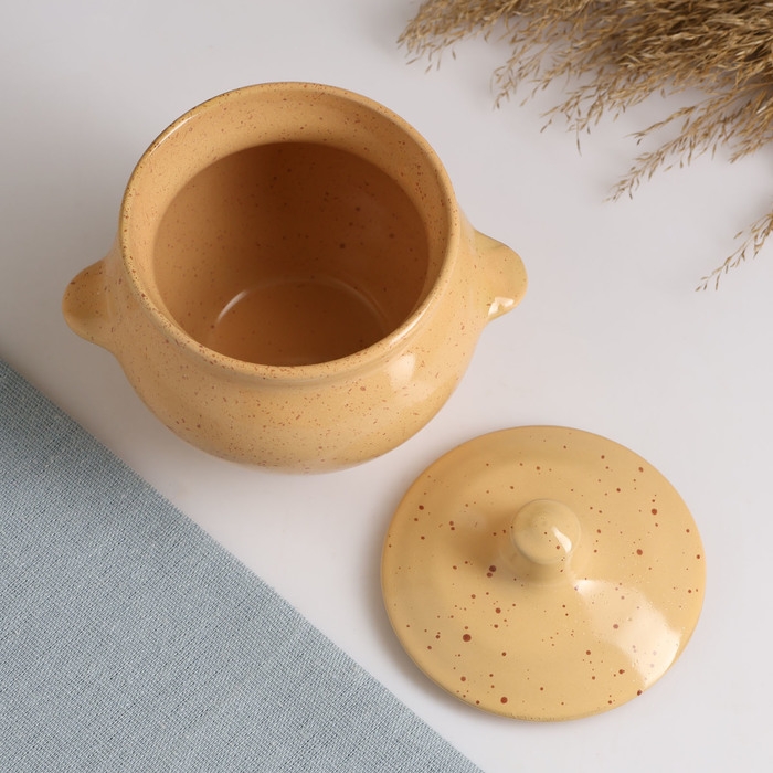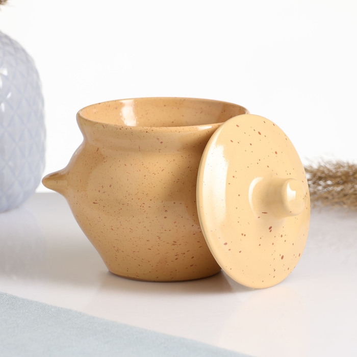 Горшок керамический для запекания №5 с ручками, 0,5л / 10х10,5см, каракум