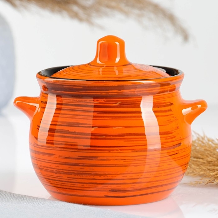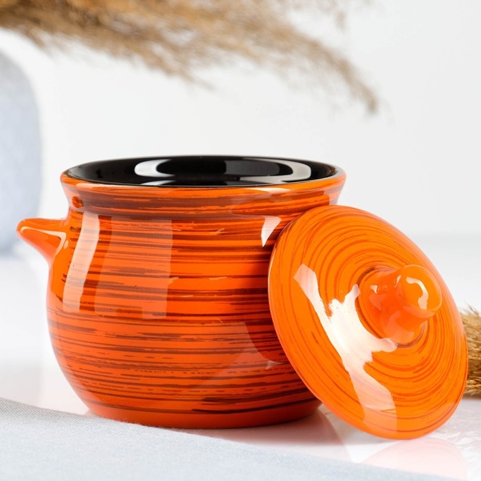 Горшок керамический для запекания "Пиканто" 0,65л / 12,5х11,5см, оранжевая полоска