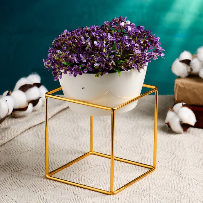 Горшок на подставке "Куб" на золотой подставке 17х12х12см