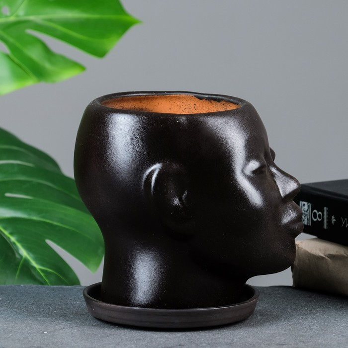 Горшок - органайзер "Голова" тёмно-коричневый, 1,3 л/16х14х15см