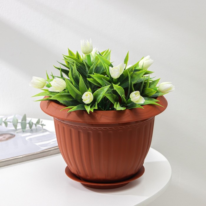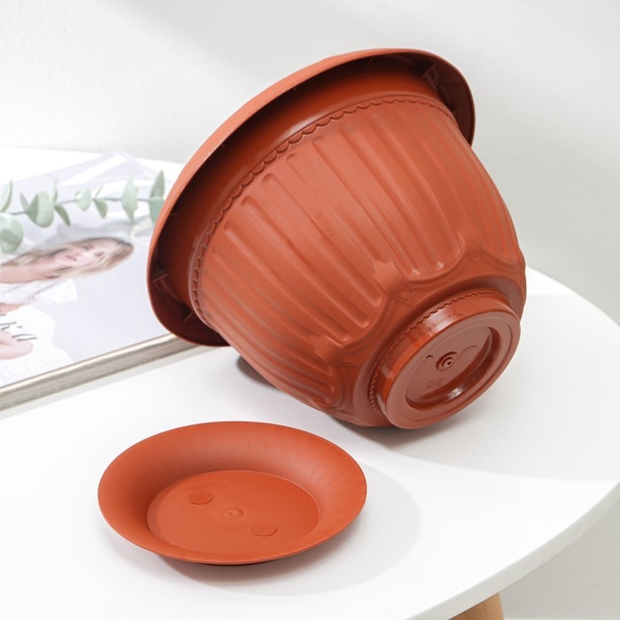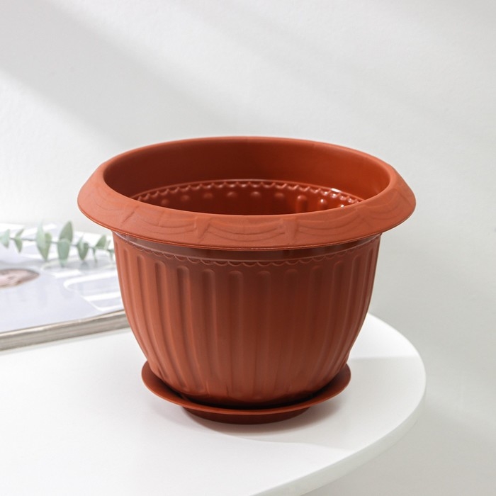 Горшок с поддоном «Байкал», 2 л, цвет терракотовый