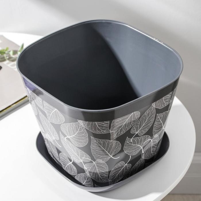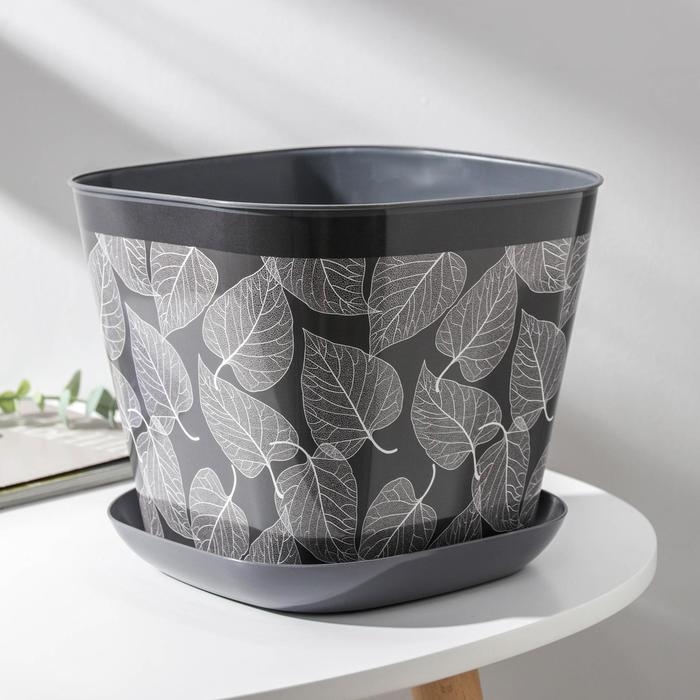 Горшок с поддоном «Листопад», 5 л, цвет тёмно-серый