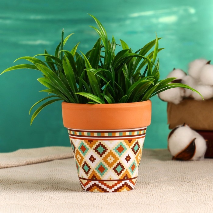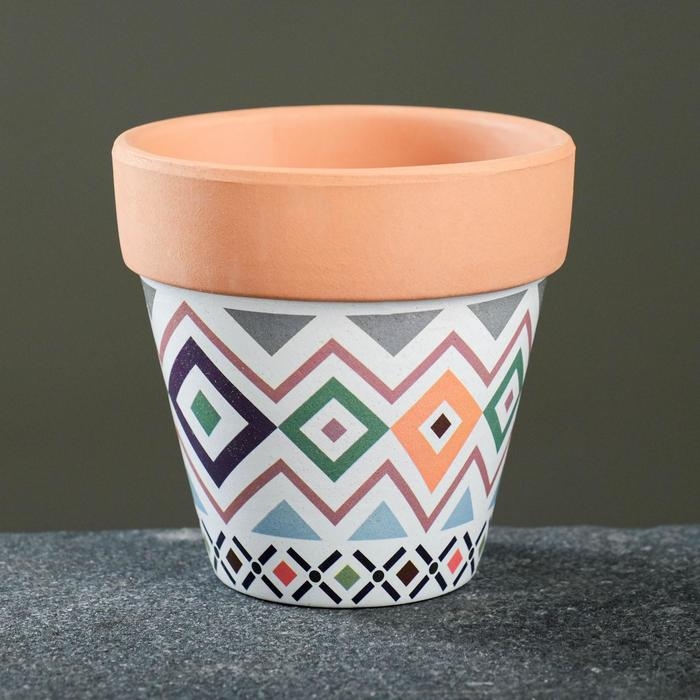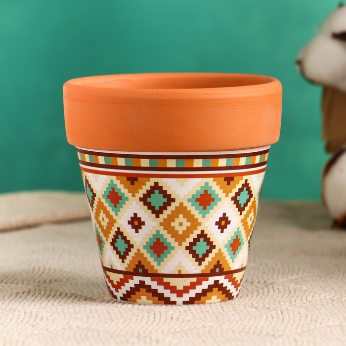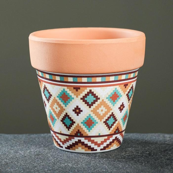 Горшок "Трапеция" терракот с узором, 9х9см, МИКС