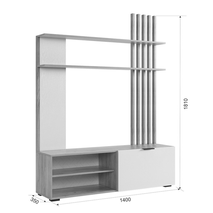 Гостиная "Бери" 1400х350х1810 - это элегантная и стильная мебельная композиция. Гостиная имеет размеры 1400х350х1810 мм, что делает ее прекрасным решением для просторных помещений