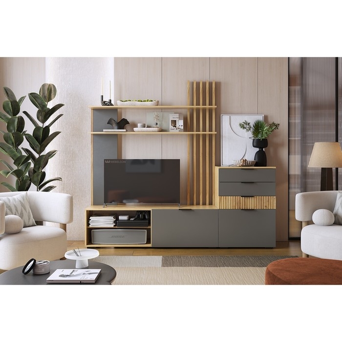 Гостиная "Бери" 1400х350х1810 дуб крафт золотой/графит