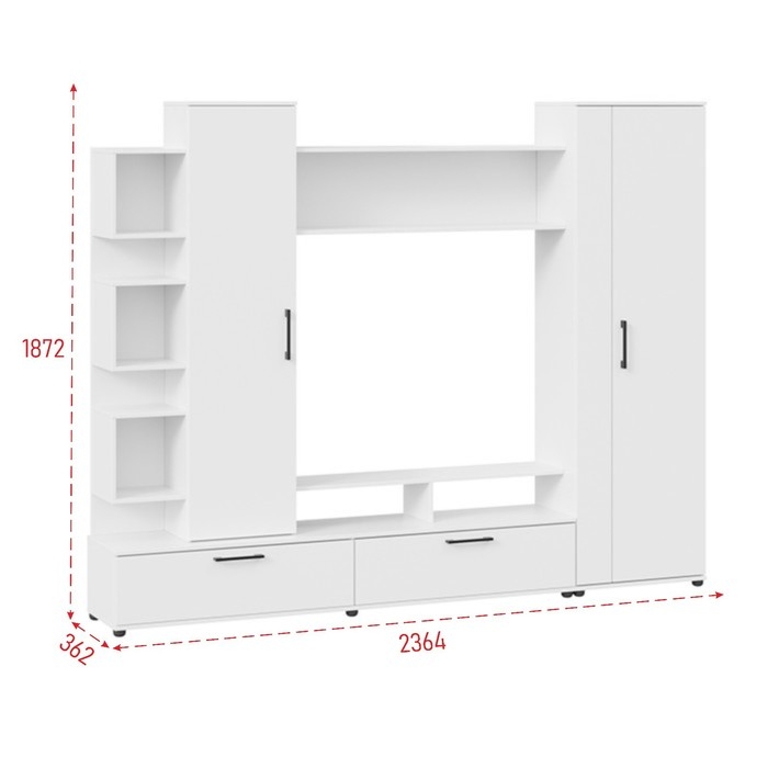 Гостиная Дакота, 2364х362х1872, Белый ясень