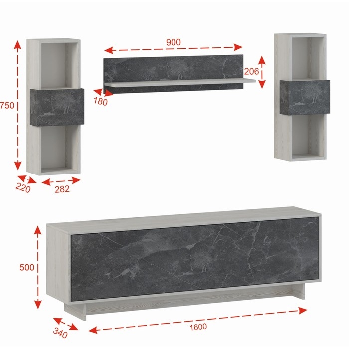 Гостиная Oskar mini, 1600х343х500, Сосна Белая Loft/Каспий темный