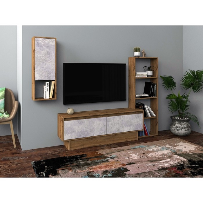 Гостиная "Сенатор-1", 1750 х 300 х 1410, дуб вотан / цемент