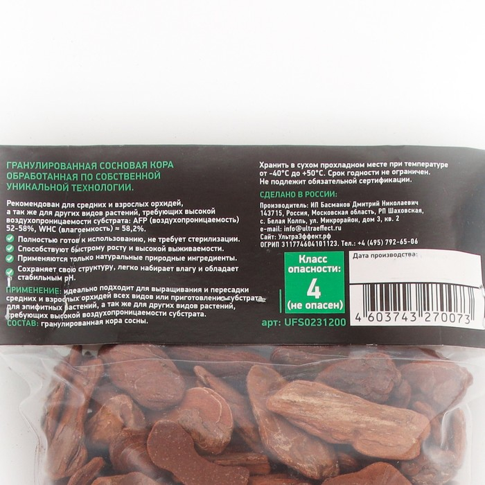 ГРАНУЛЯТ УЛЬТРА ЭФФЕКТ - это долговечный субстрат произведен по собственной разработанной рецептуре с использованием новейших технологий на Российском Научно Производственном Объединении "БиоТехнолоджи" специально для выращивания орхидей всех сортов и видов, а так же для составления грунта своими руками для пересадки комнатных растений и цветов.