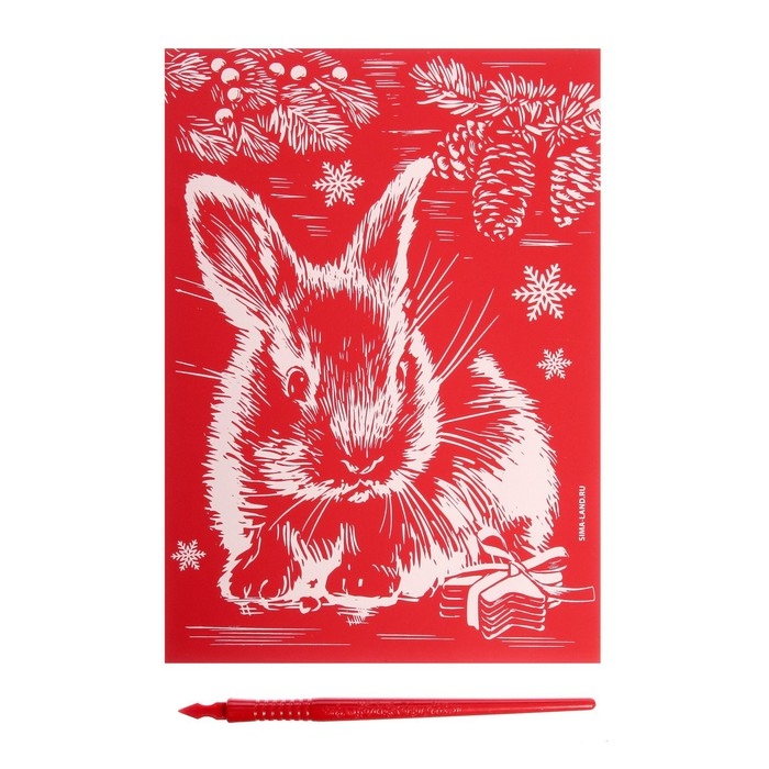 Гравюра на новый год «Кролик», с эффектом «золото», А5
