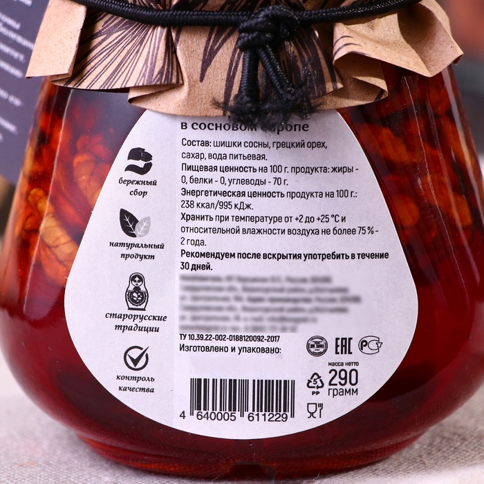 Натуральное варенье из грецких орехов в сосновом сиропе - это уникальный продукт, который изготавливается из экологически чистых ингредиентов - свежих грецких орехов и натурального соснового сиропа.