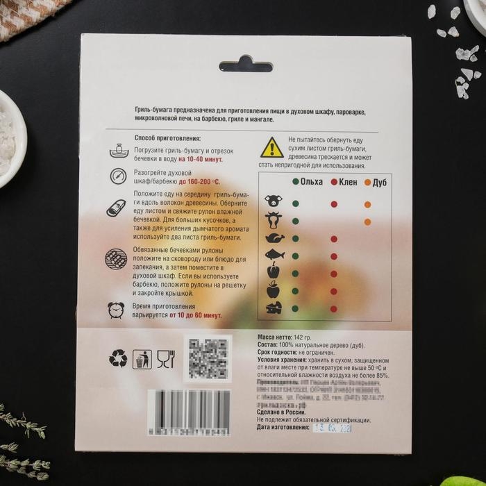 Гриль-бумага из древесины, 20×18 см, 8 шт/уп, дуб