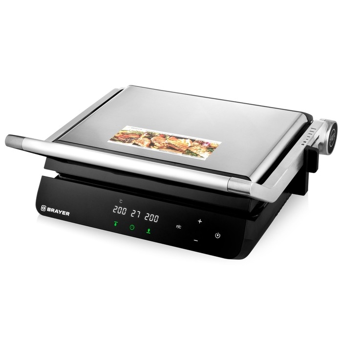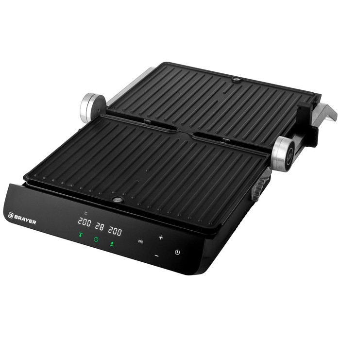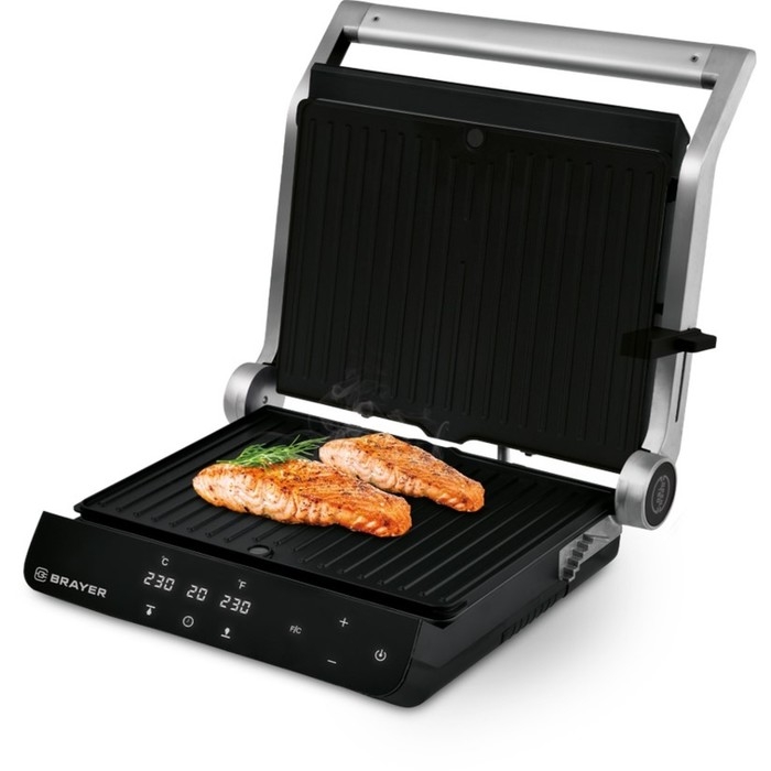 Гриль электрический BRAYER 2008BR, антипригарное покрытие, 33х24.5 см, серебристый