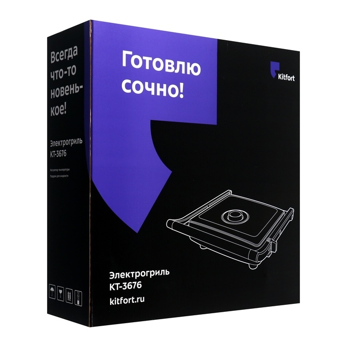 Гриль электрический Kitfort КТ-3676, 2000 Вт, антипригарное покрытие, 29х26 см