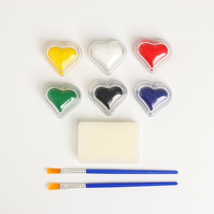 Грим для лица и тела «Сердечки» 6 цветов, спонж, 2 кисти, в пакете