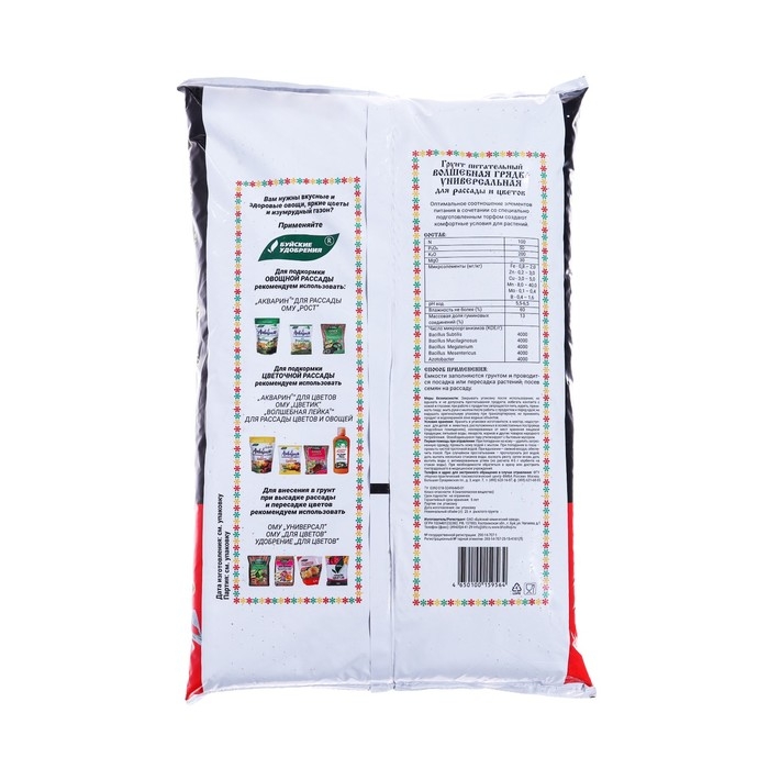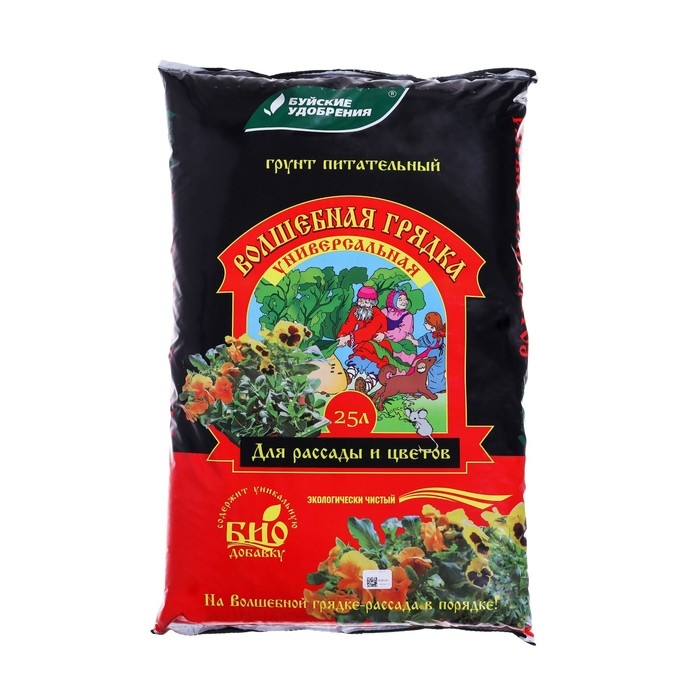 Грунт Волшебная грядка для выращивания рассады овощных и цветочных культур, декоративных горшечных растений и выгонки зеленных культур. Приготовлен на основе нейтрализованного верхового торфа с добавлением в сбалансированном соотношении необходимых макро- и микроэлементов. Специализированные грунты для выращивания цветов и рассады, овощных и декоративных культур. Содержат сбалансированный состав по макро- и микроэлементам. Оптимальные агрофизические свойства создают прекрасные условия для развития растений.Преимущества:Полностью готов к применениюСодержит комплекс питательных элементовУсиливает цветение и завязывание плодовПовышает приживаемость и декоративность растенийУвеличивает сопротивляемость неблагоприятным условиям среды, болезням. Состав:N (мг/л): 100P2O5 (мг/л): 50K2O (мг/л): 200MgO (мг/л): 30Микроэлементы: мг/кг: Zn – 0.2-0.3; Fe – 0.8-2.0; Cu – 3.0-5.0; Mo – 0.1-0.4; B – 0.4-1.6; Mn – 8.0-40.0. Показатель pH - 5.5-6.5. Назначение: грунт для выращивания рассады овощных и цветочных культур, декоративных горшечных растений и выгонки зеленных культур. Приготовлен на основе нейтрализованного верхового торфа с добавлением в сбалансированном соотношении необходимых макро- и микроэлементов.