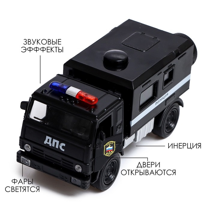 Грузовик металлический «КАМАЗ. ДПС», 1:52, инерционный, звуковые и световые эффекты, цвет чёрный