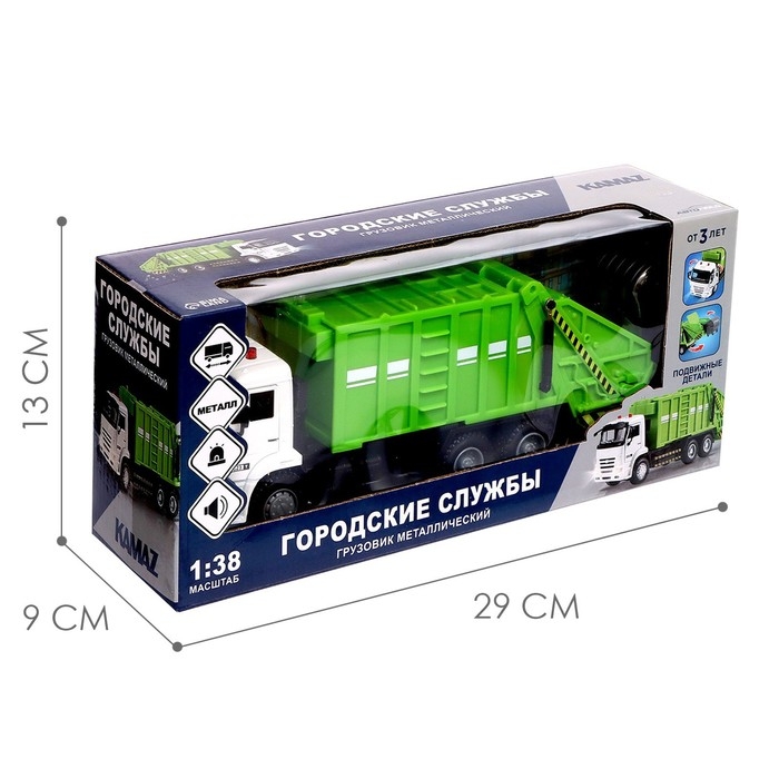 Грузовик металлический «КАМАЗ «Городские службы», масштаб 1:38, инерция, свет и звук