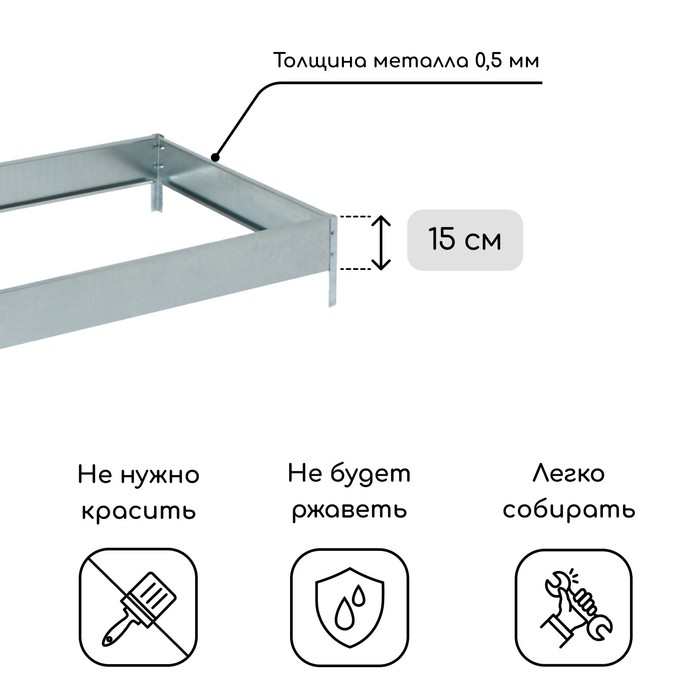 Грядка оцинкованная, 195 × 70 × 15 см, Greengo