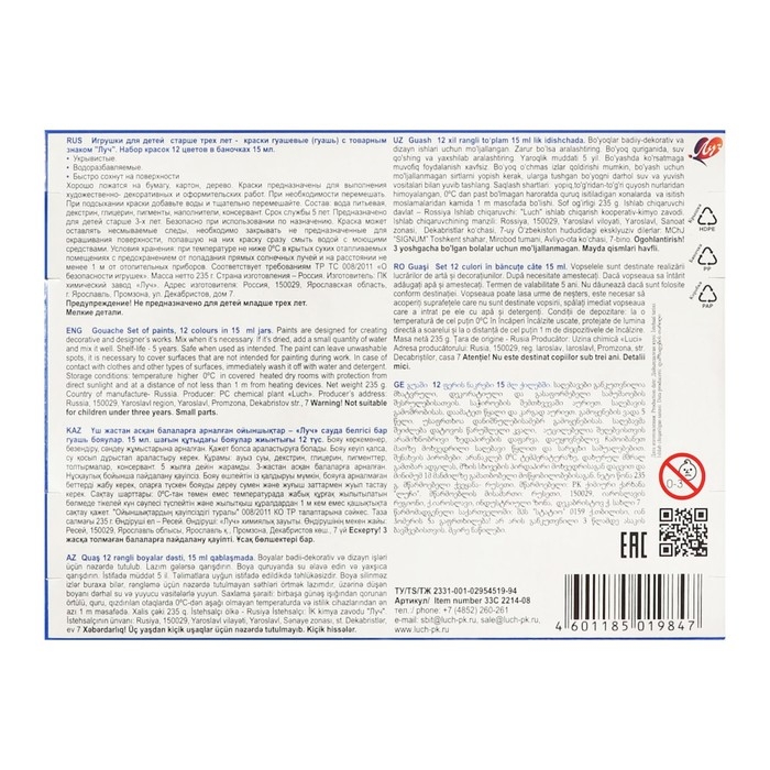 Гуашь 12цв*15мл Луч "Аниме" (синяя)