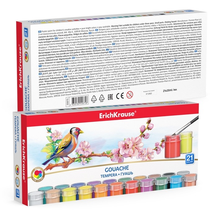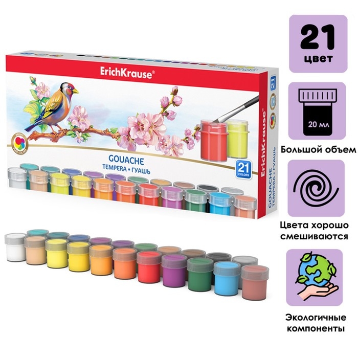 Гуашь ErichKrause, 21 цвет по 20 мл