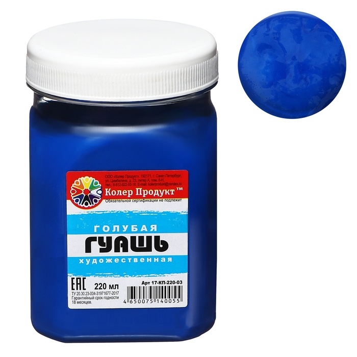Гуашь художественная "Колер Продукт", 220 мл, в банке, голубой