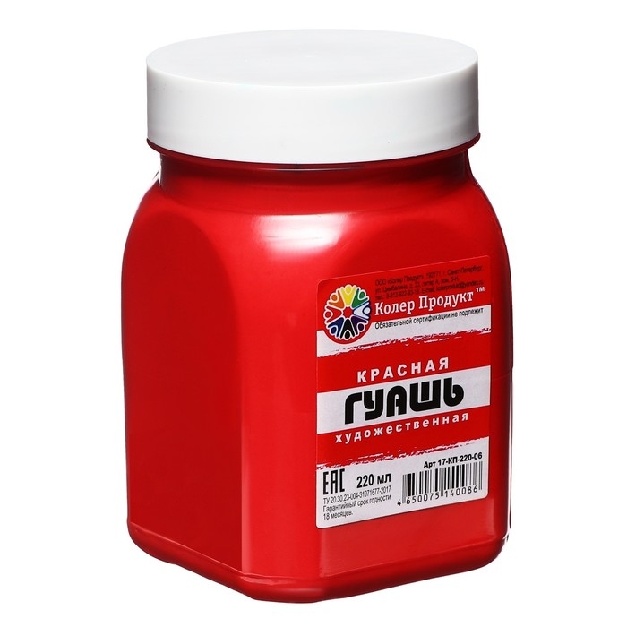 Гуашь художественная "Колер Продукт", 220 мл, в банке, красный