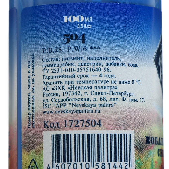 Гуашь художественная в банке 100 мл, ЗХК "Мастер класс", кобальт синий светлый (1727504)
