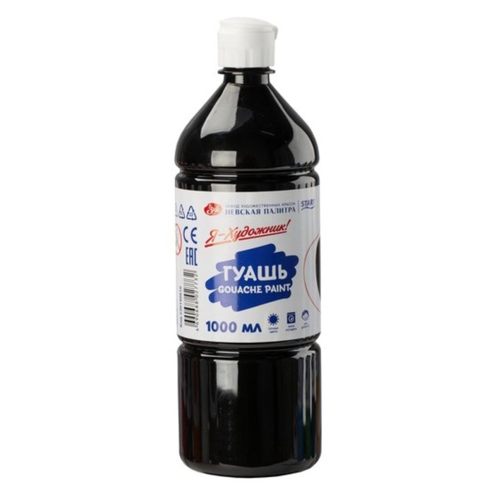 Гуашь в бутылке 1000 мл, ЗХК "Я - Художник!", чёрная, 230140810