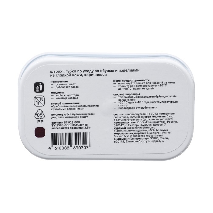 Губка для обуви из гладкой кожи ШТРИХ Стандарт, коричневая предназначена для очистки легких загрязнений, придания блеска и обновления внешнего вида обуви (изделий) из гладких кож.