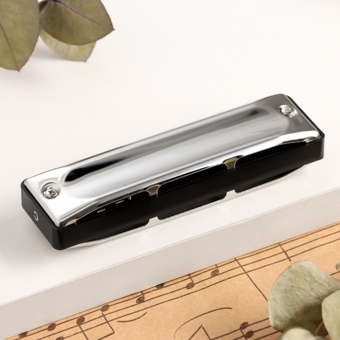 Губная гармошка Music Life 4 отверстия, 8 тонов, 3,5х1,5х1см, цепь 28см, серебристая