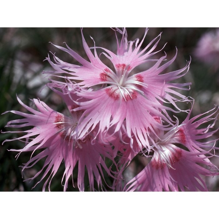 Гвоздика песчаная «Bahroma» (розовая) – многолетнее низкорослое растение, высотой до 10-15 см. Цветки розово-сиреневые, размером до 3 см. с ярко-розовым ободком в центре. Лепестки глубоко разрезаны по краю. Соцветия обладают легким ароматом. Листики очень тонкие, светло-зеленые образуют плотную дернинку.Цветет обильно с июня по июль. Предпочитает легкие плодородные почвы, без застоя воды, солнечные места, но растёт и в легкой полутени. Нарастает быстро. Размножается делением кустиков или черенкованием побегов весной и летом, а так же семенами. Неприхотливое, морозо- и зимостойкое растение.Используется для посадки в альпинарии и различные контейнеры, подходит для срезки. Сочетается в компании с низкорослыми кровохлебками, лабазниками, маргаритками.