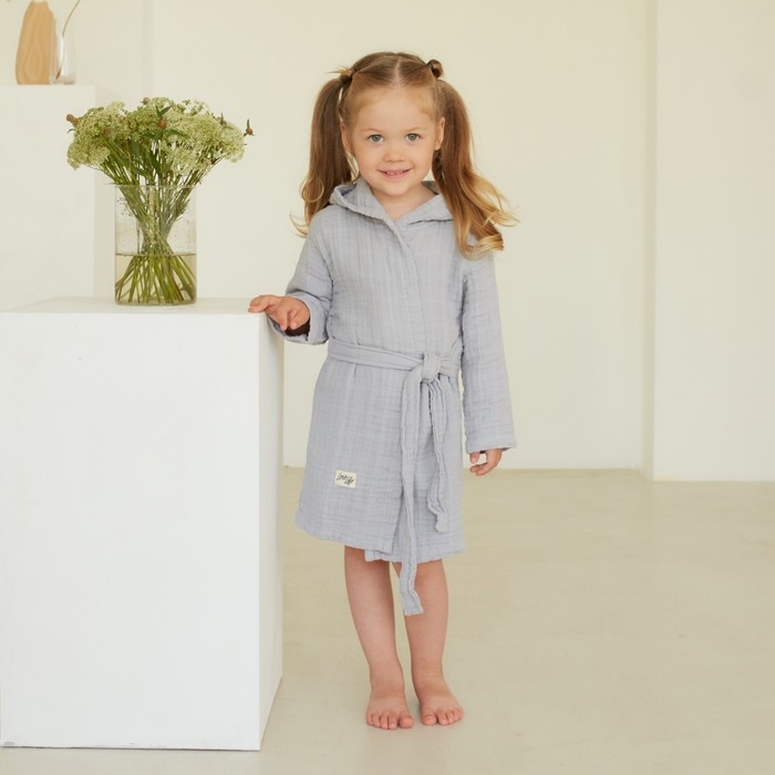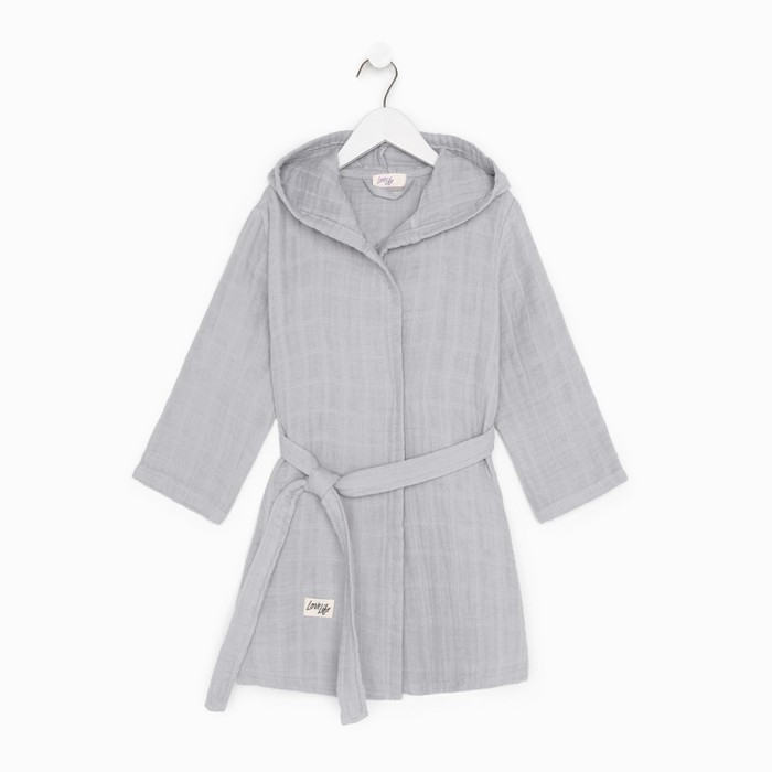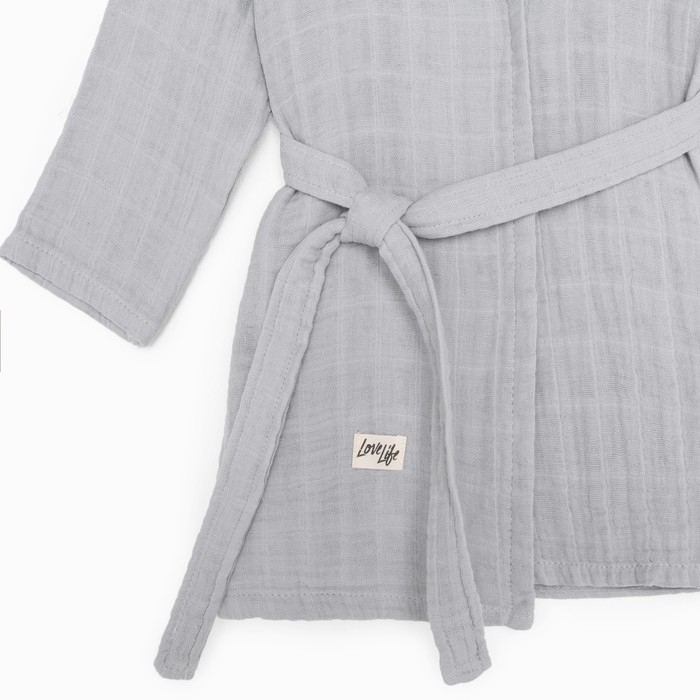 Халат детский муслиновый LoveLife (3 года, рост 98-104 см), цвет серый, 100% хлопок, 235 гр/м2