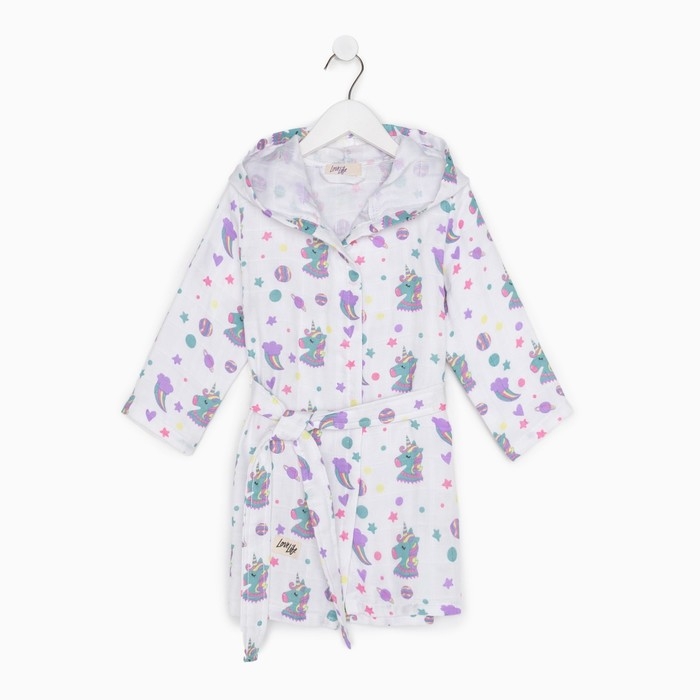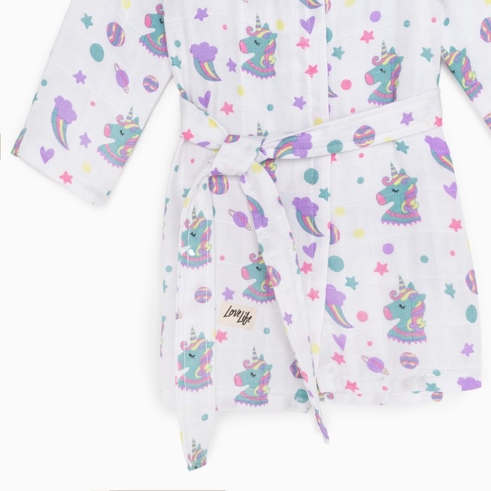 Халат детский муслиновый LoveLife «Единороги» (5 лет, рост 110-116 см) 100% хлопок, 235 гр/м2