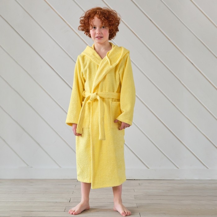 Халат махровый детский Экономь и Я, р-р 34, цв.светло-желтый, 100% хлопок 320 г/м2
