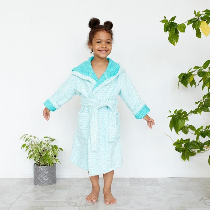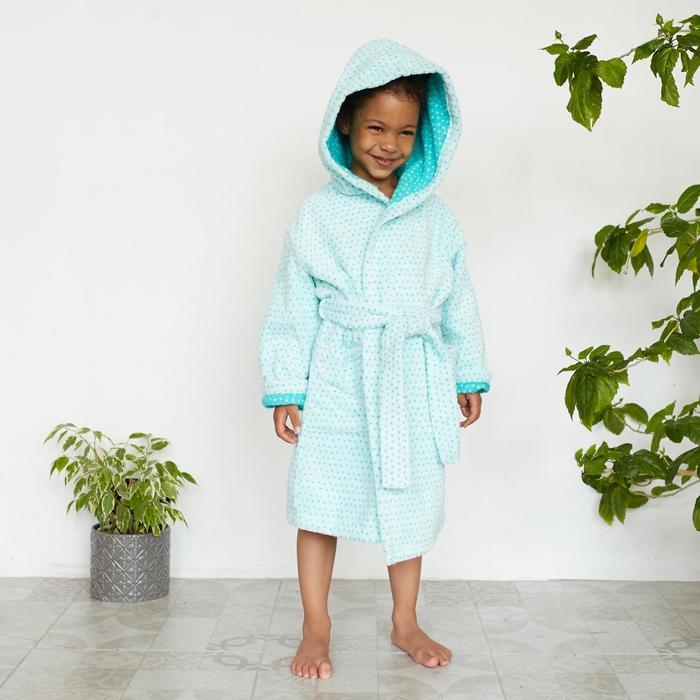 Халат махровый детский Крошка Я «Крапинка» размер 32, цвет бирюзовый, 100% хлопок 360 г/м2