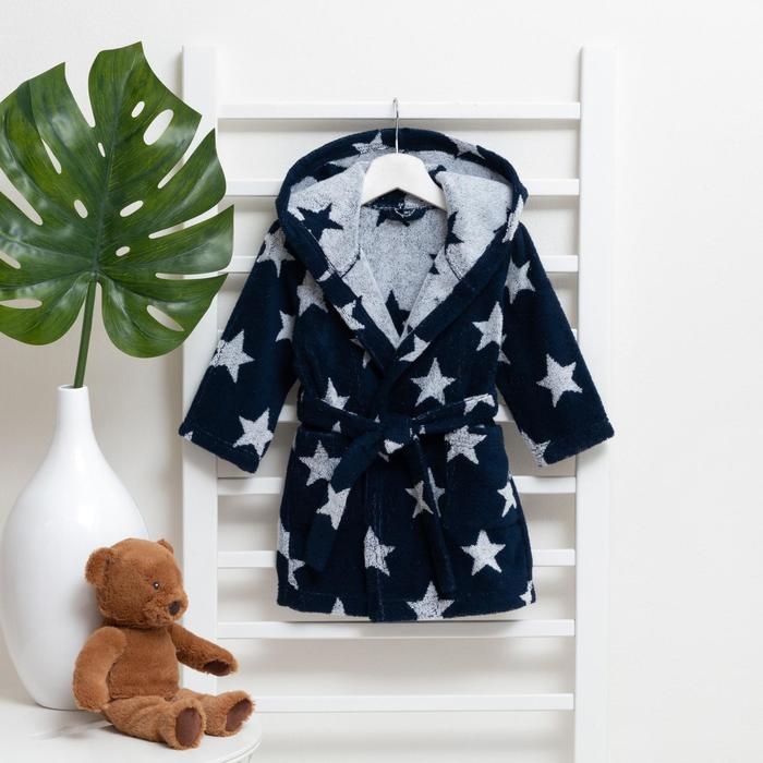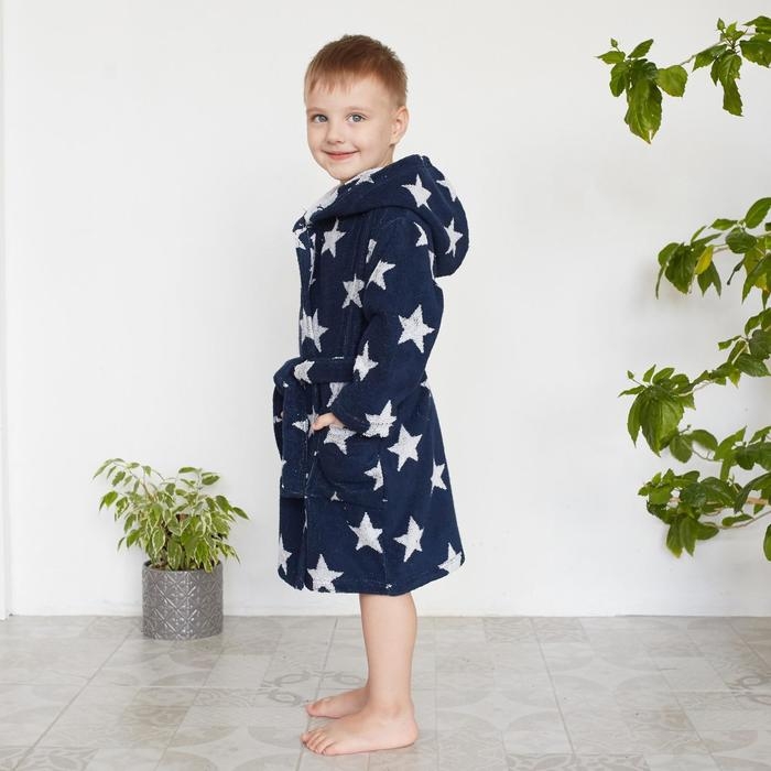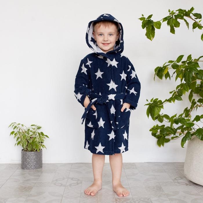 Халат махровый детский Крошка Я «Звездочки» размер 32, цвет синий, 100% хлопок 360 г/м2