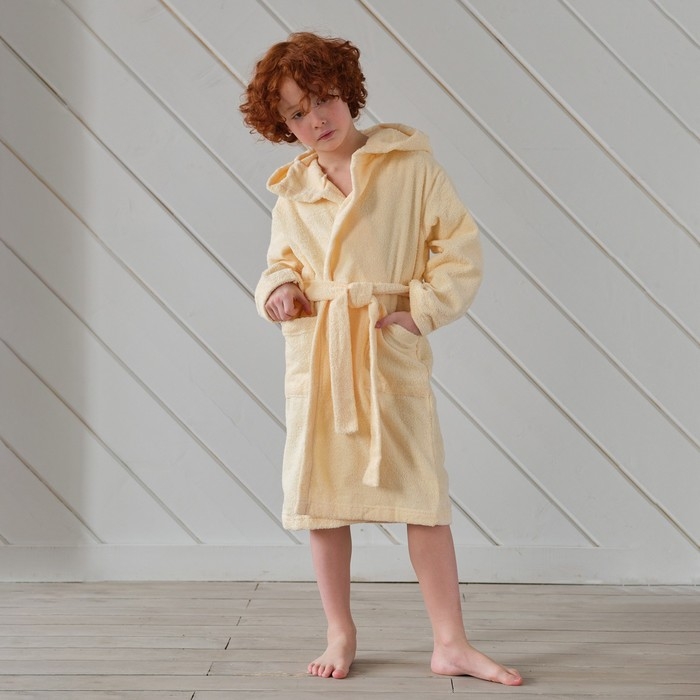 Халат махровый детский "Rock" р-р 32 (110-116 см), бежевый