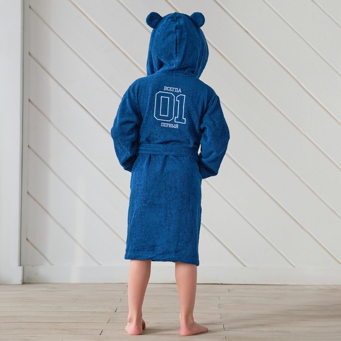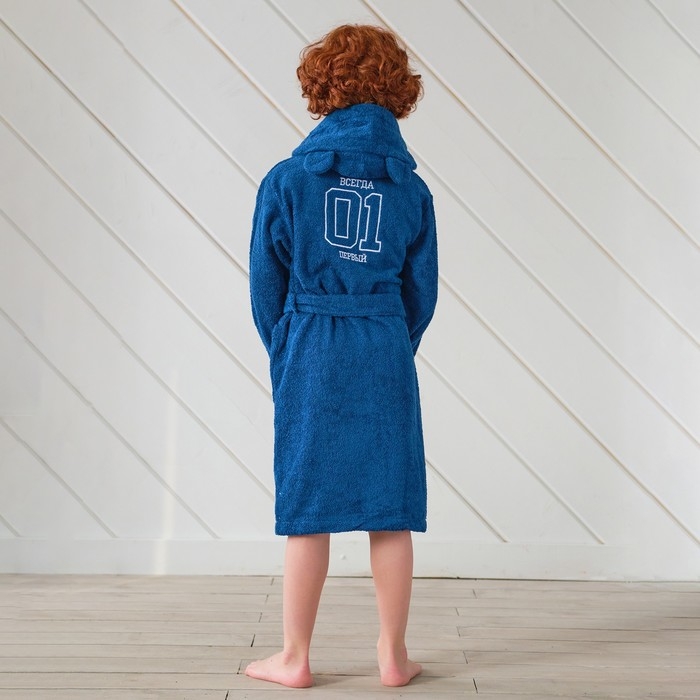 Халат махровый детский "Всегда первый" р. 30 (98-104 см), синий