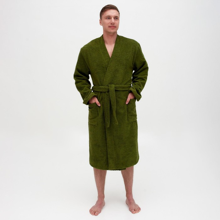 Халат махровый Экономь и Я, мужской размер 48-50 цвет хаки, 100% хлопок с AIRO, 320 г/м2