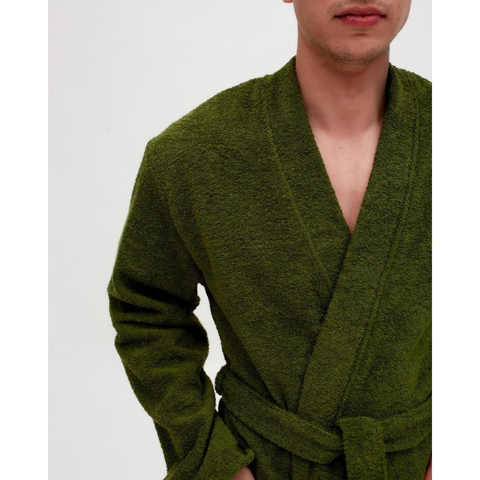 Халат махровый Экономь и Я, мужской размер 52-54 цвет хаки, 100% хлопок с AIRO, 320 г/м2