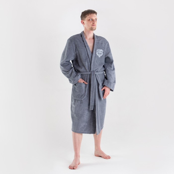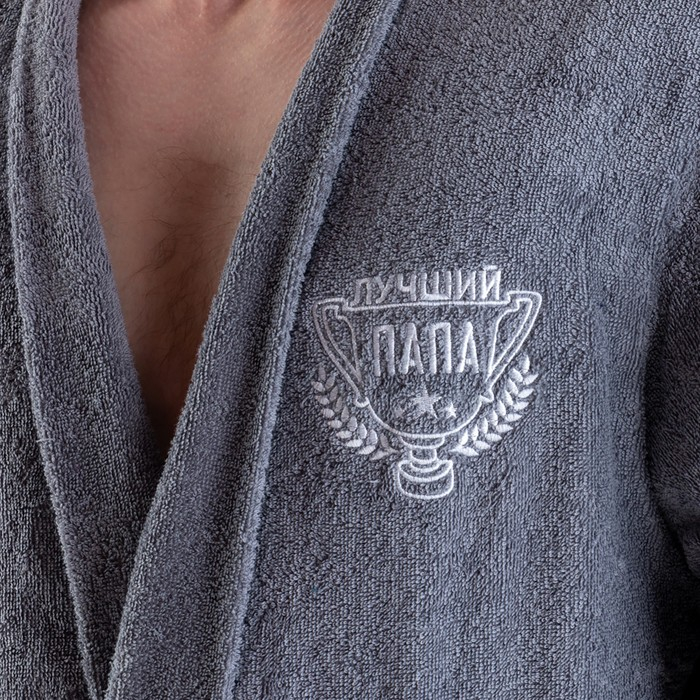 Халат махровый мужск. "Лучший папа" р-р 52-54, серый